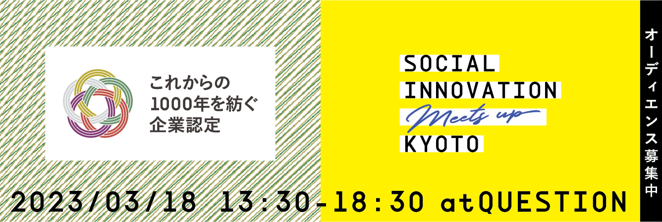 この度、第7回「これからの1000年を紡ぐ企業認定」の申請企業による公開プレゼンテーション及び事業アイデアコンテスト「SOCIAL INNOVATION Meets up KYOTO」のピッチイベントを開催します。